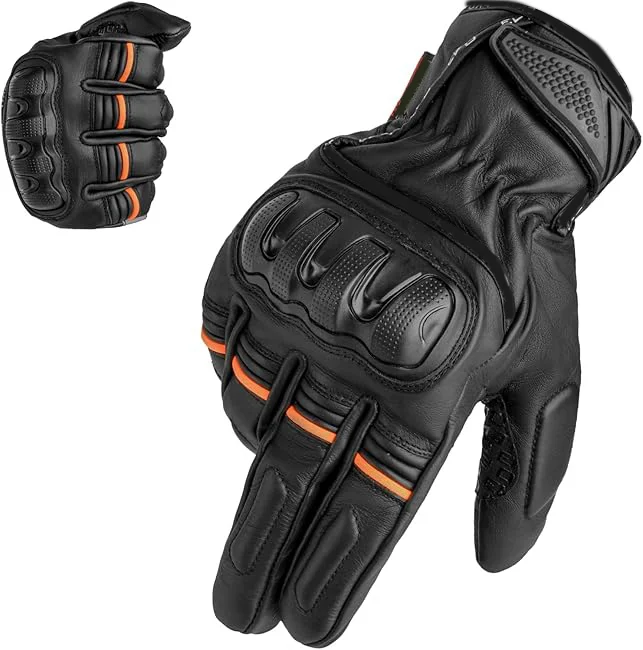 - PREMIUM LEATHER: These motorcycle gloves are made with high quality sheepskin. Hand-selected soft and supple selected leather is used that is extremely comfortable and flexible.